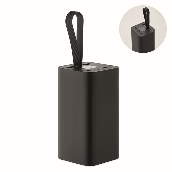 20.000 mAh power bank made of recycled aluminium with a digital power display and silicone hanger. Features two Type-C and two USB-A outputs with PD 65W fast charging. Rozměry: 93 x 50 x 50 cm