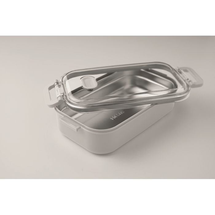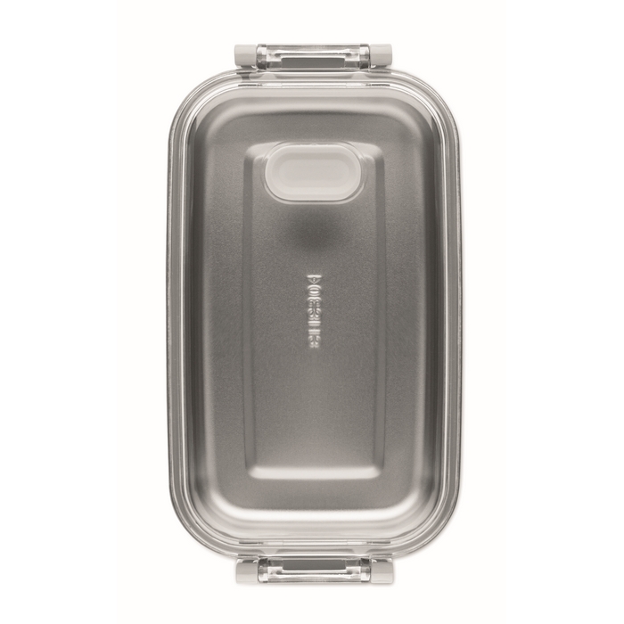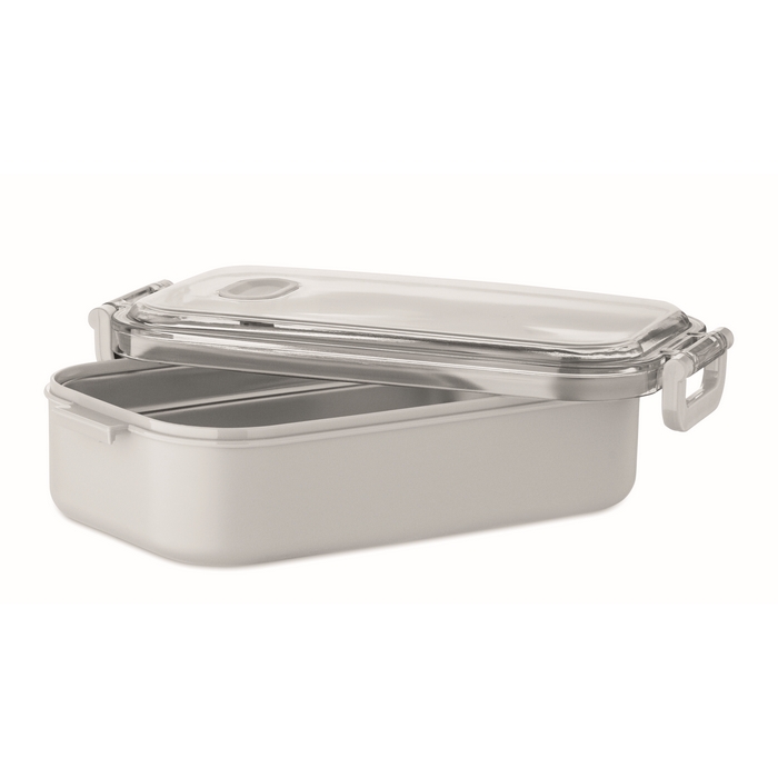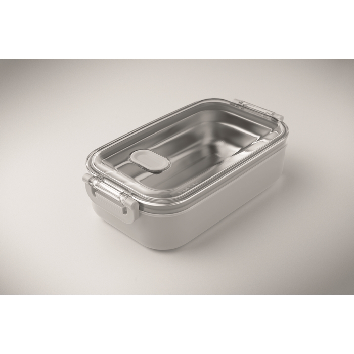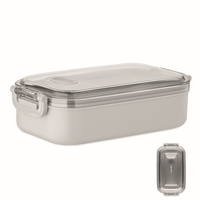 Lunch box made of PP with additional recycled stainless steel inner layer. Airtight AS lid that keeps food fresh and secure during transport. Capacity 750 ml without tray and 650 ml with tray. Dimensions: 21.6 x 12 x 6.5 cm
