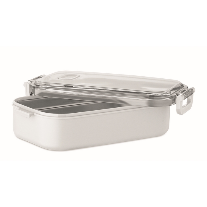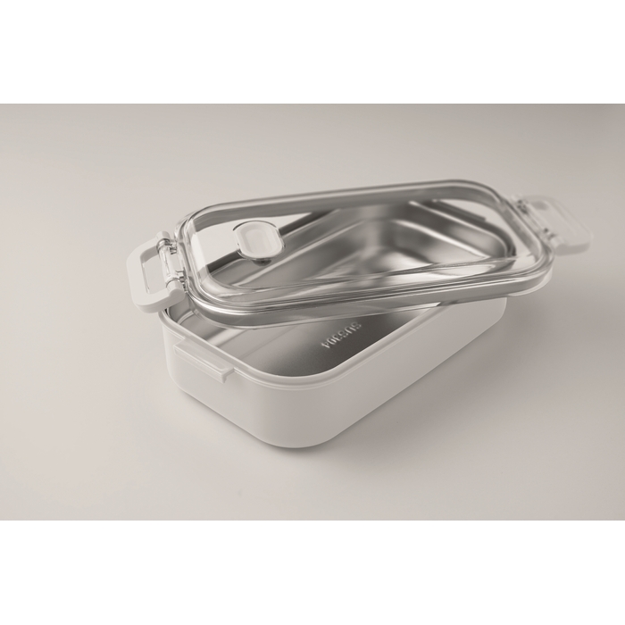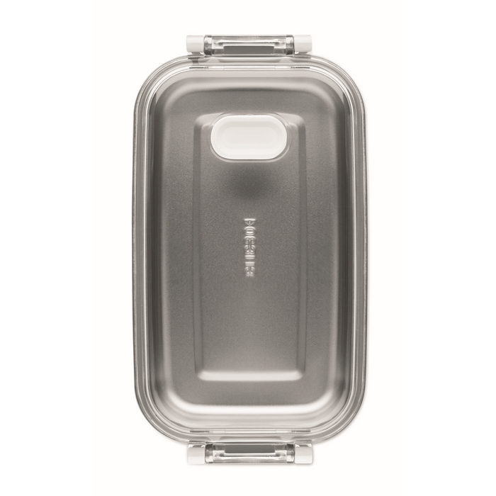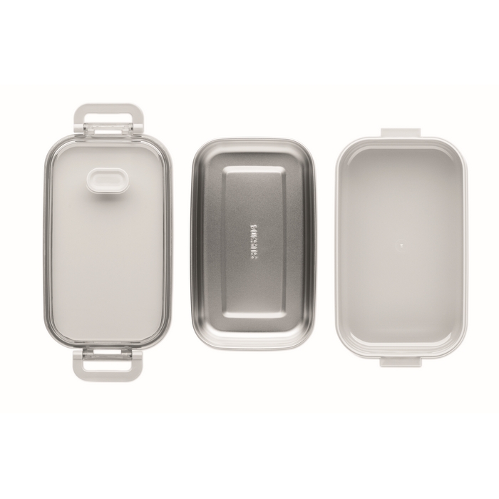 Lunch box made of PP with additional recycled stainless steel inner layer. Airtight AS lid that keeps food fresh and secure during transport. Capacity 750 ml without tray and 650 ml with tray. Dimensions: 21.6 x 12 x 6.5 cm