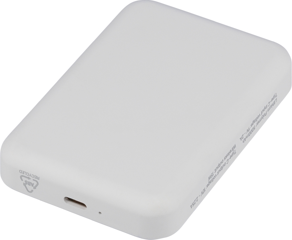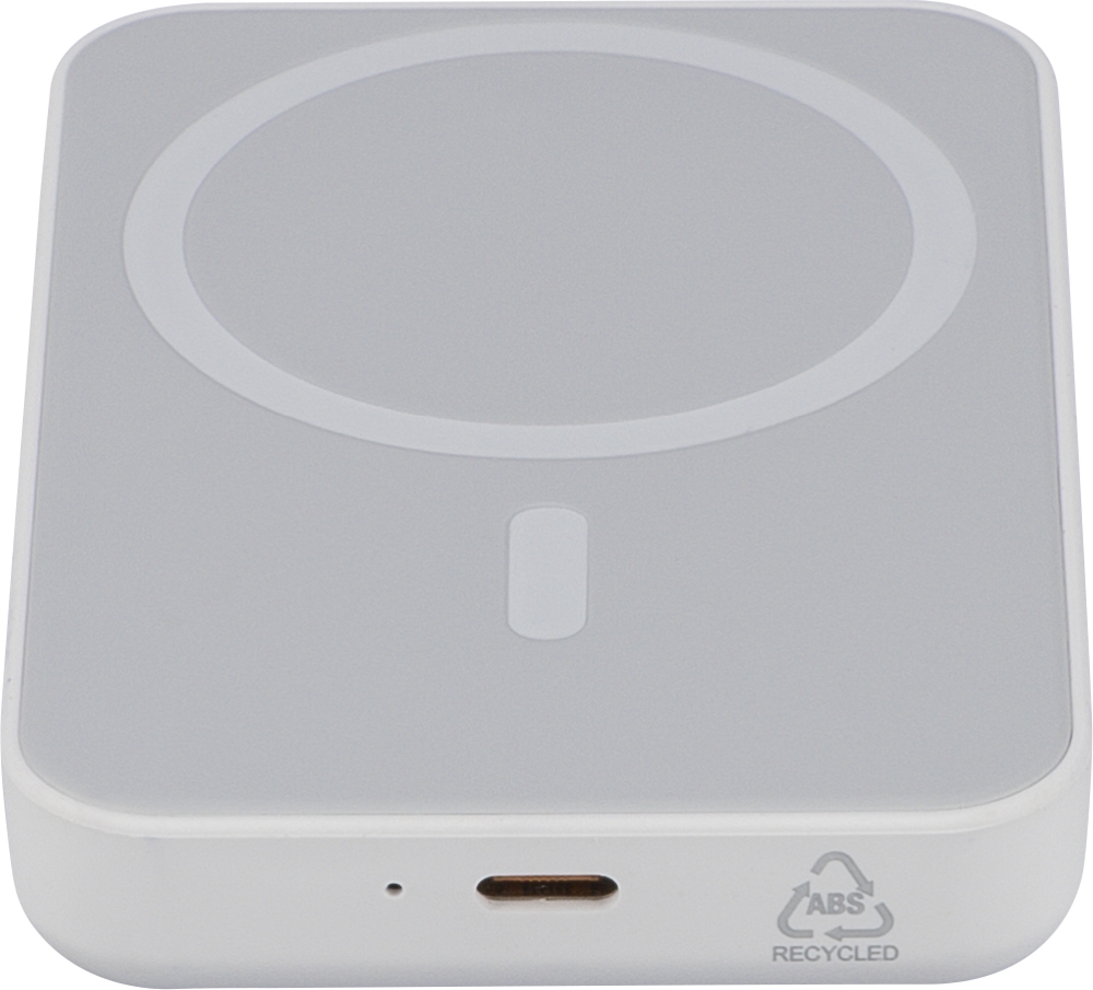 Recycled ABS wireless charger powerbank Miren, white