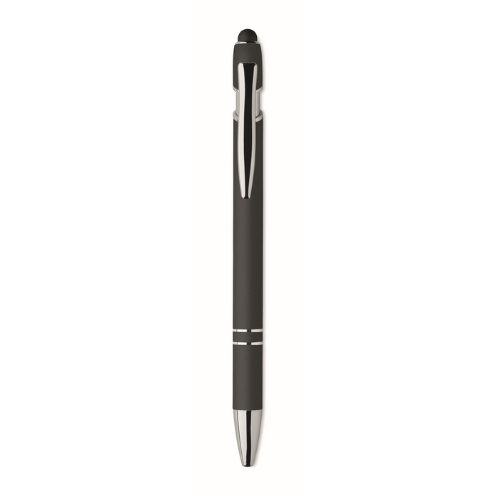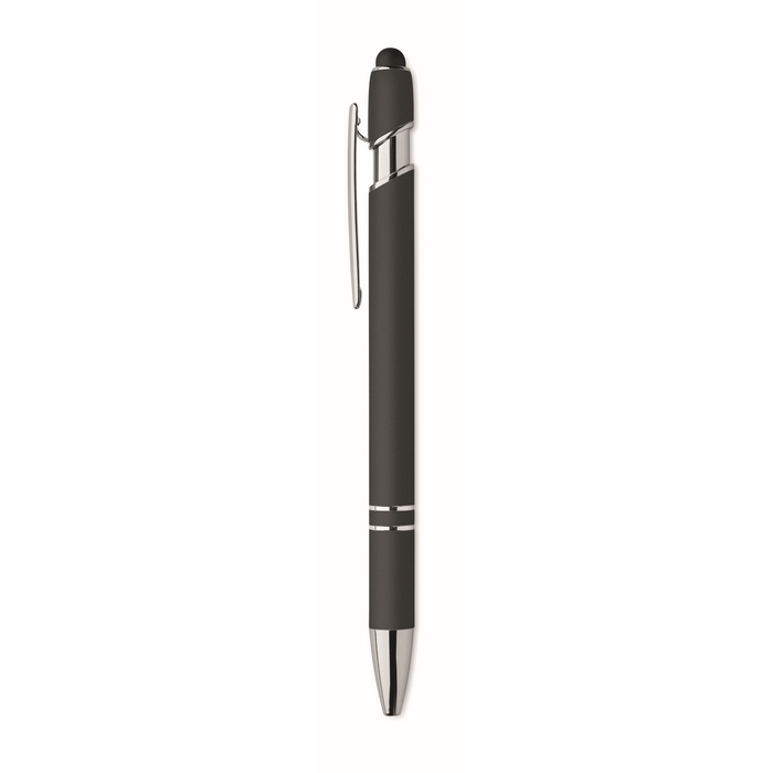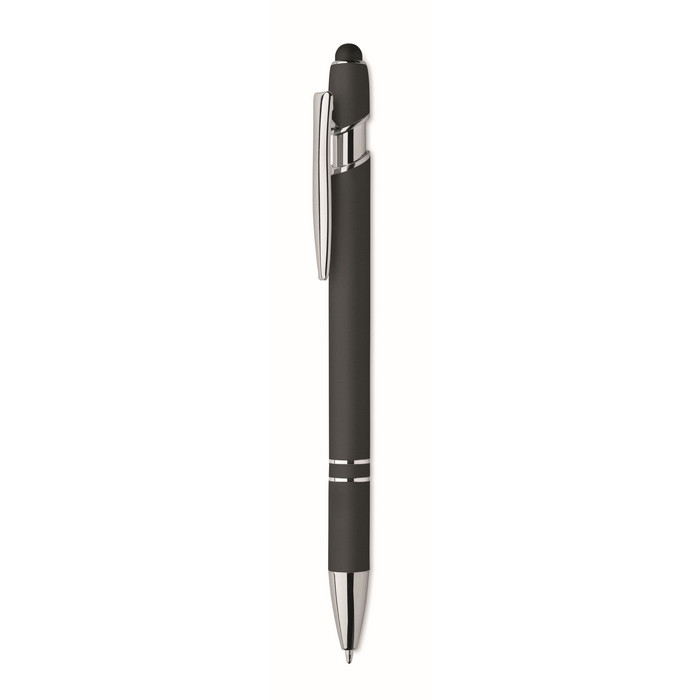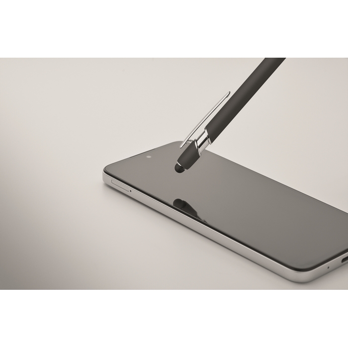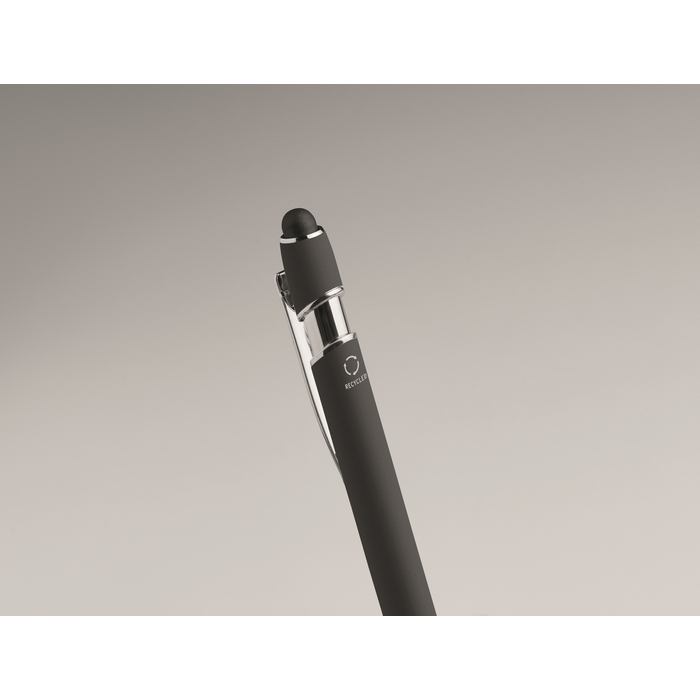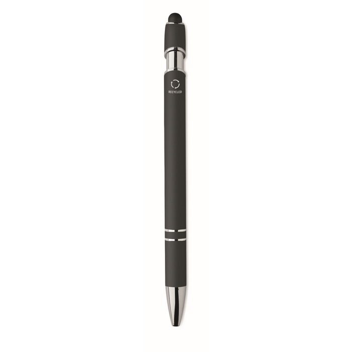 Recycled aluminium stylus push ball pen. Blue ink. Dimensions: 14 x 1 cm