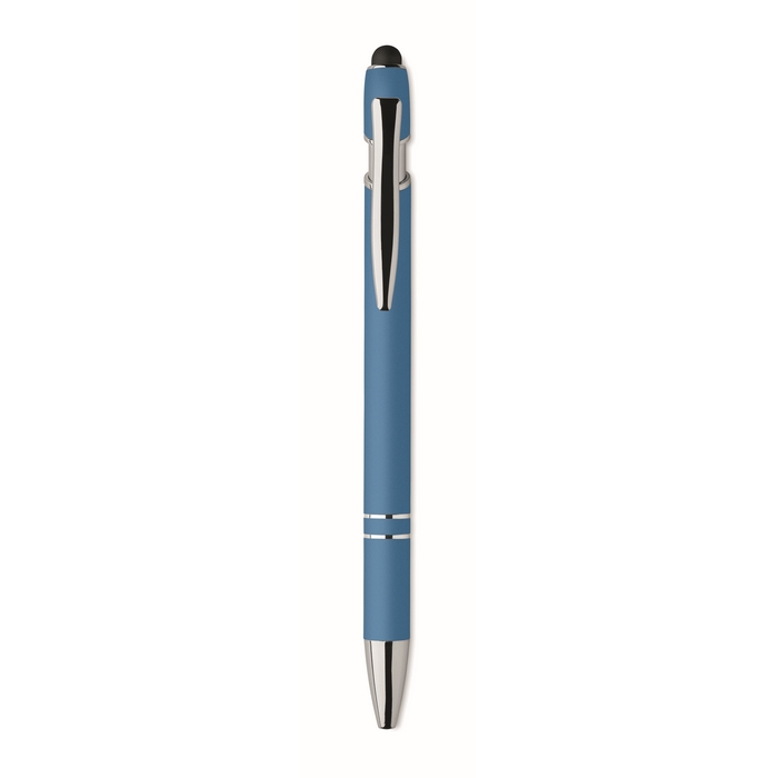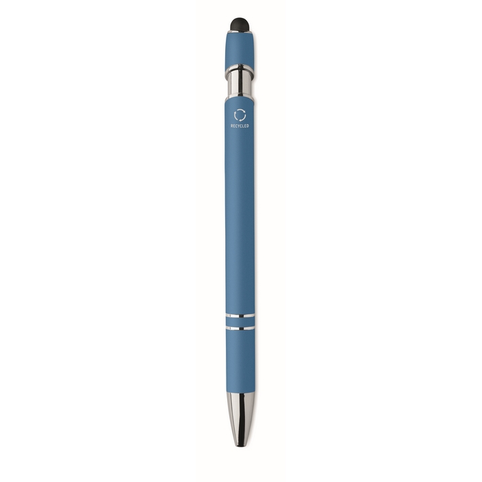 Recycled aluminium stylus push ball pen. Blue ink. Dimensions: 14 x 1 cm