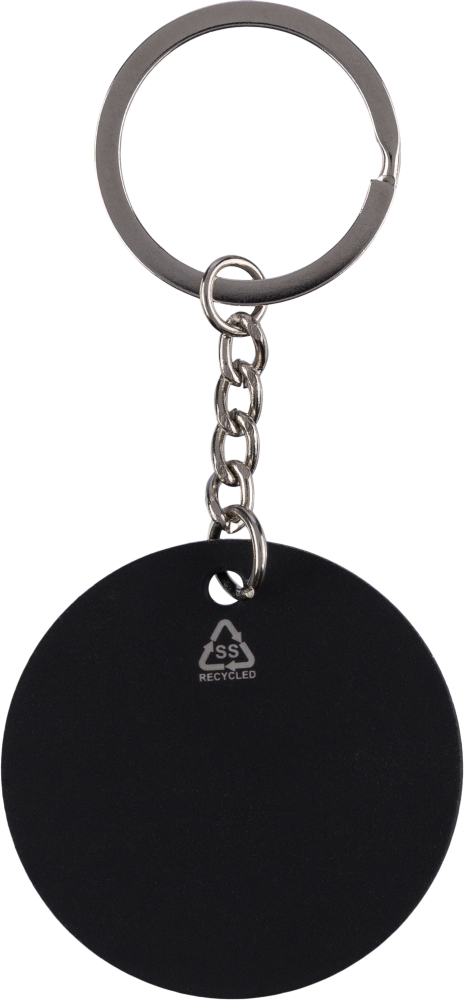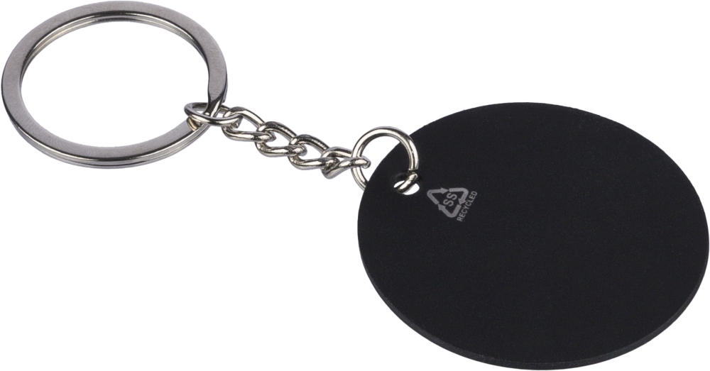 Recycled stainless steel round keychain Risa, black