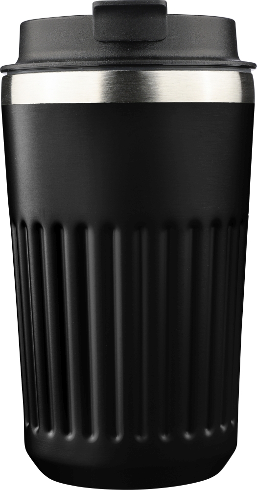 Recycled stainless steel travel mug (400 ml) Chiara, black