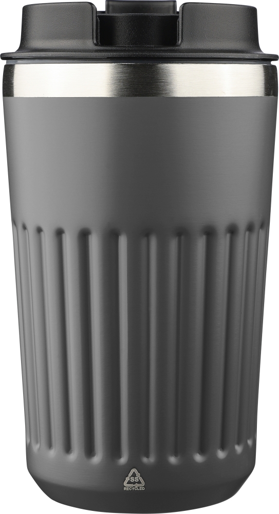 Recycled stainless steel travel mug (400 ml) Chiara, grey