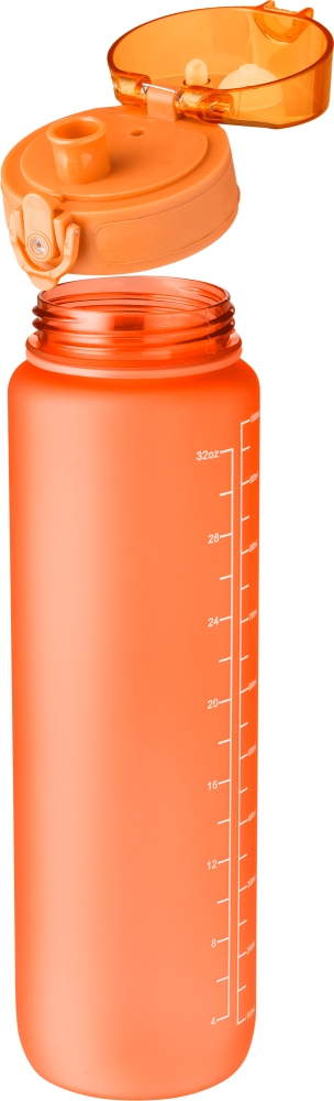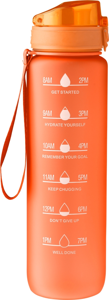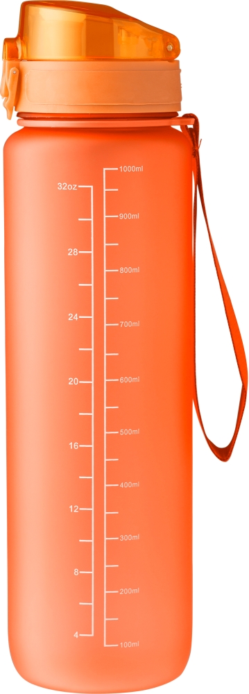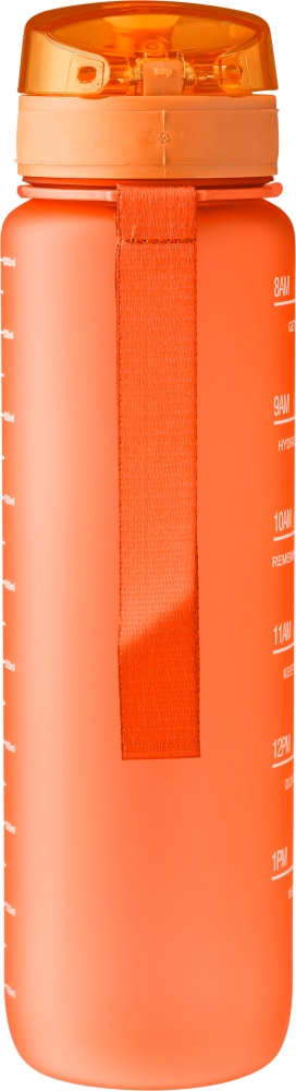 RPET drinking bottle (1000 ml) with matt finish and wristband. Leak proof. Dimensions: 7,5 x 28,5 cm