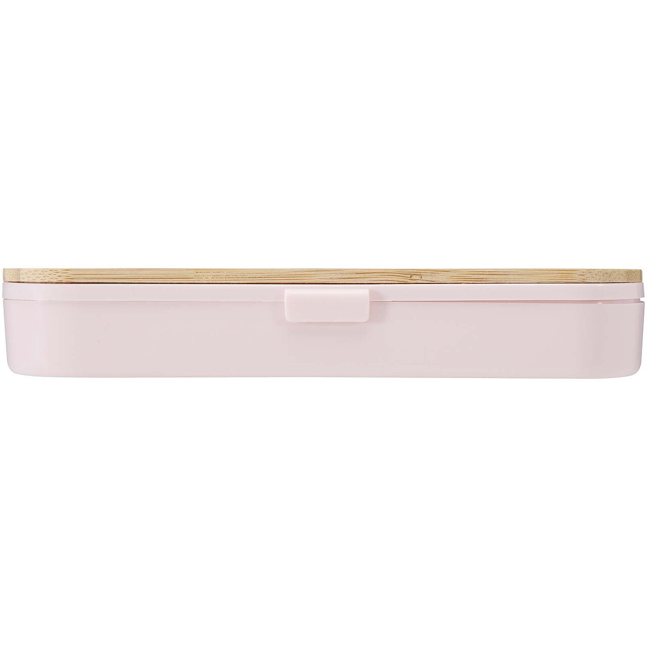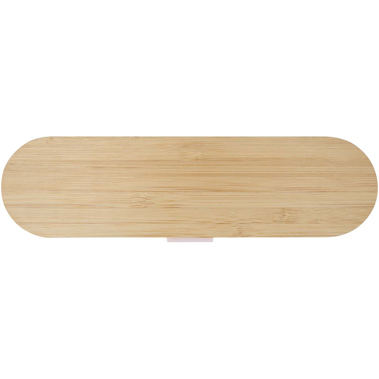 A reusable cutlery set with a bamboo lid, including a fork, knife, spoon, straw, and straw cleaner – ideal for meals on the go. Compact and easy to clean, it’s perfect for lunch boxes, travel, or office use. Dimensions: 16,5 x 2,6 x 4,7 cm