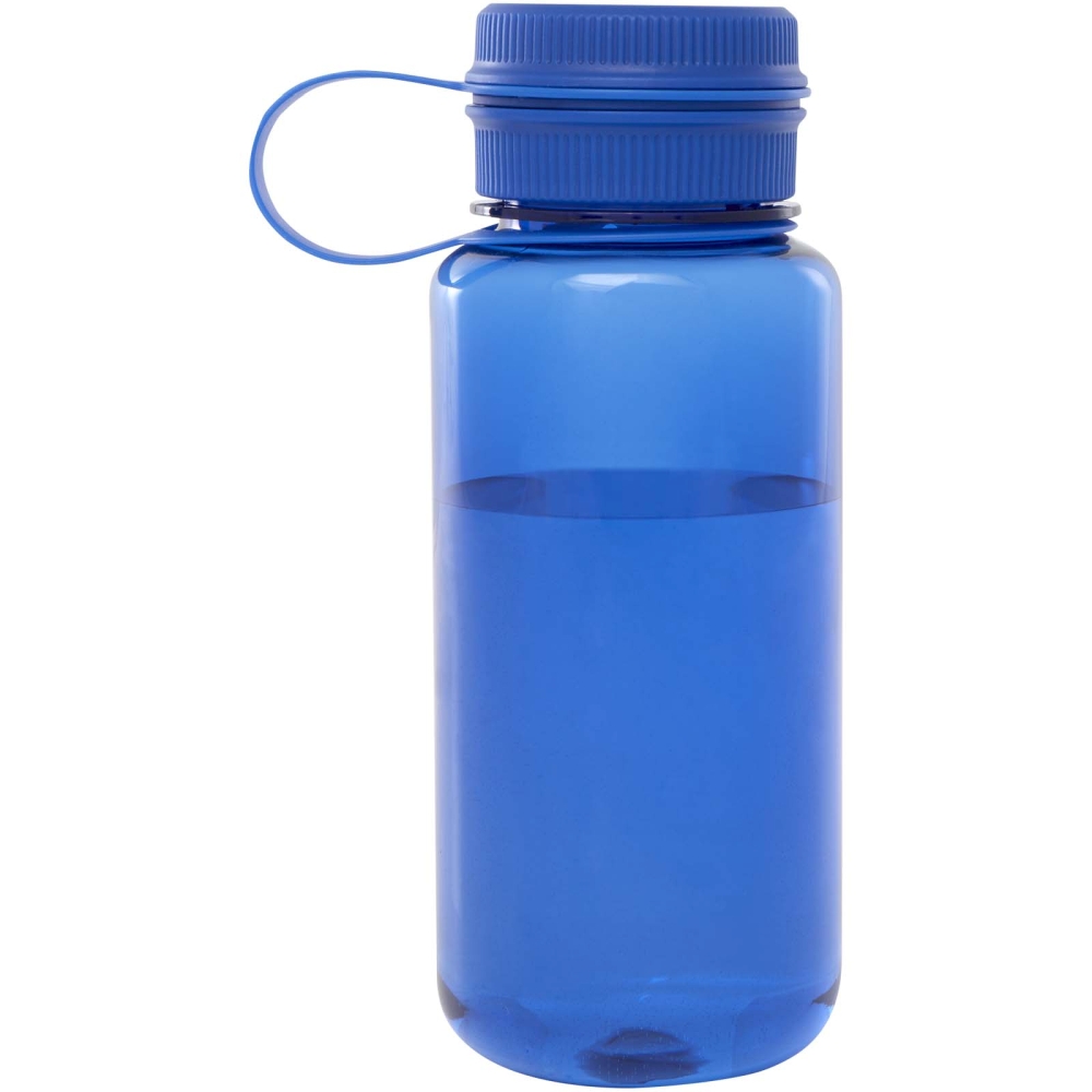 Single-walled sport bottle made from RCS certified RPET, featuring a screw-on top and leak-proof lid with a convenient handle for carrying that is integrated with the cap. Dual opening construction for easy cleaning and filling. In compliance with the EFSA-approved (European Food Safe Authority) PET recycling process. Volume capacity: 900 ml. Dimensions: 8,55 x 22,1 x 8,55 x O 5,72 cm
