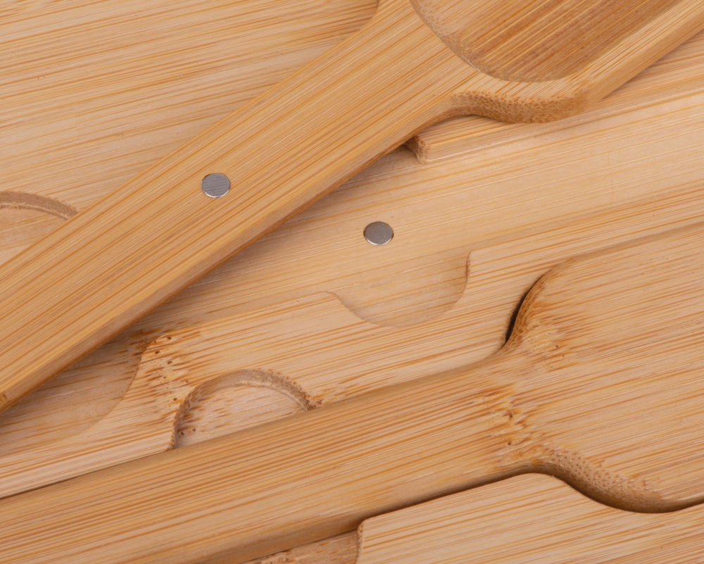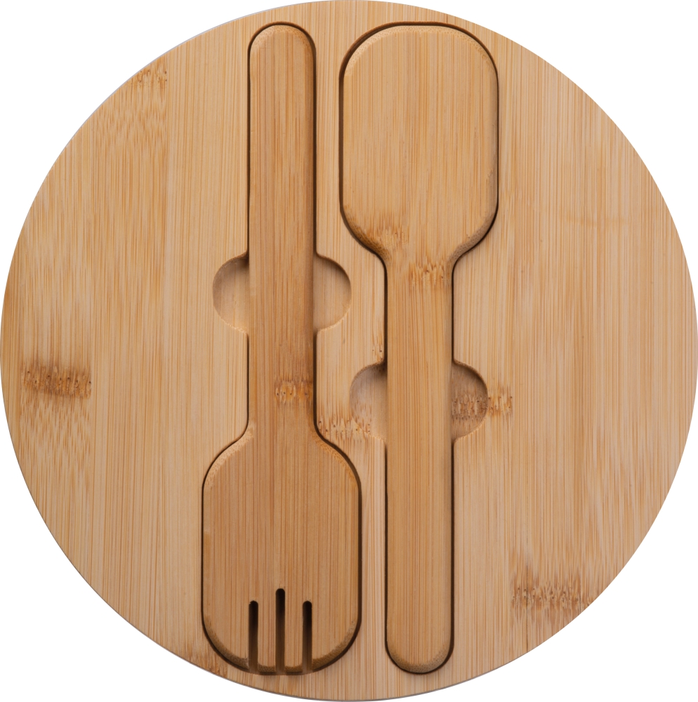 Stainless steel salad bowl with bamboo lid including cutlery and 2000ml capacity. Dimensions: o 22,3 x 9,5 cm