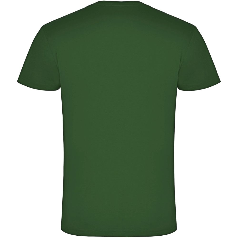 Tubular short-sleeve t-shirt with 2-layer v-neck. Reinforced covered seams in collar and shoulders. Removable label. The model is 190 cm and is wearing size L. Single Jersey knit of 100% Cotton, 155 g/m2.