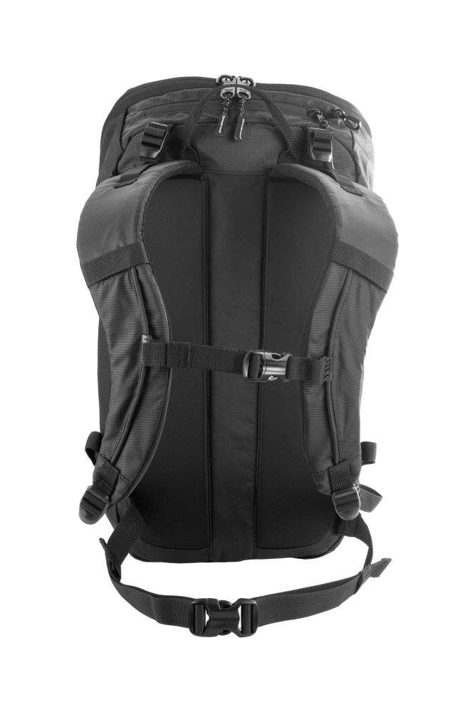 Practical Schwarzwolf backpack which is suitable for hiking as well as city use. The backpack has a main compartment with a zipper and an inner pocket, 2 side mesh pockets, a small zipper pocket in the upper back and a waist belt. There are two pull straps with a buckles on both sides of the backpack. It has a padded back system and shoulder straps. Volume: 19 l. Weight: 515 g. Material: nylon/ripstop/polyester.