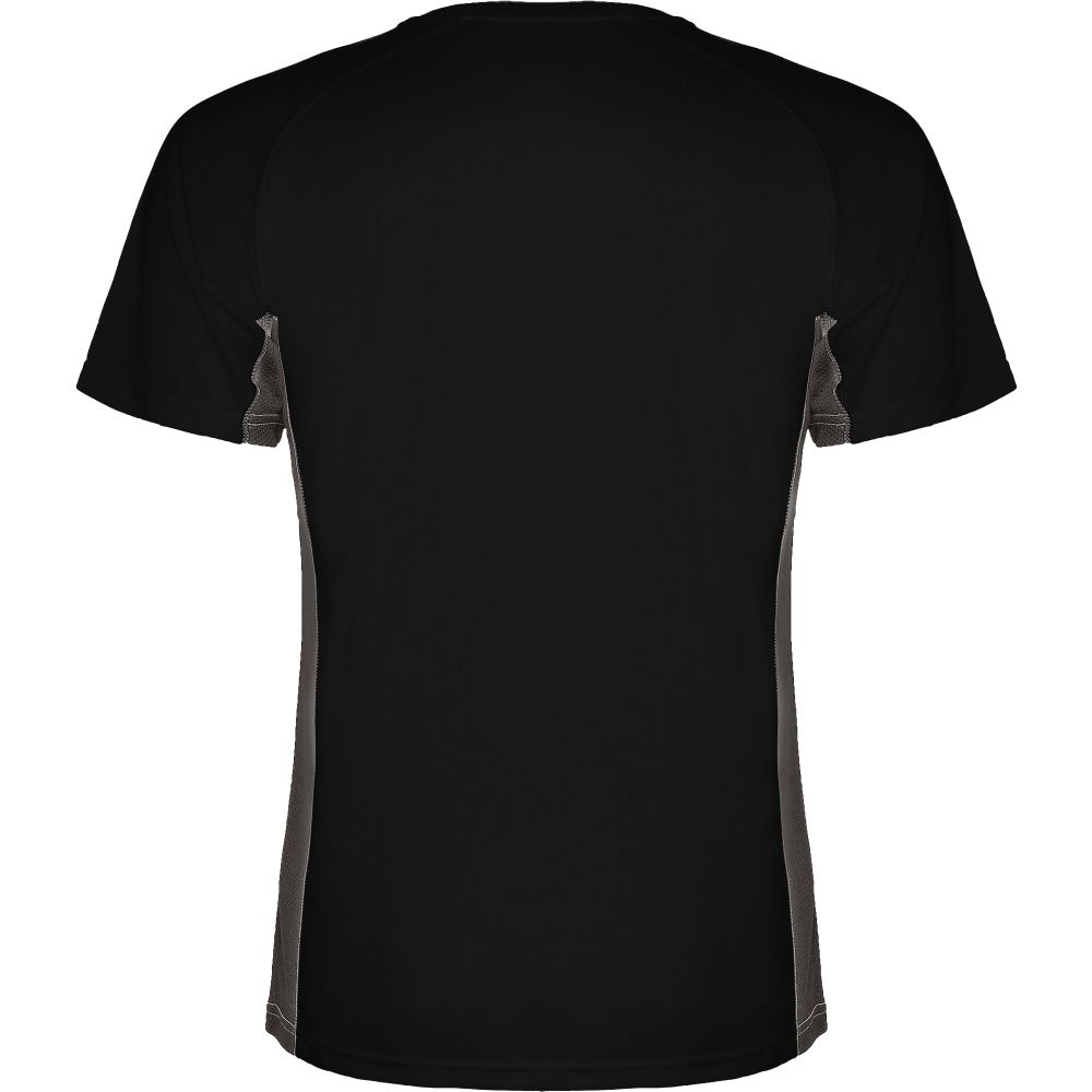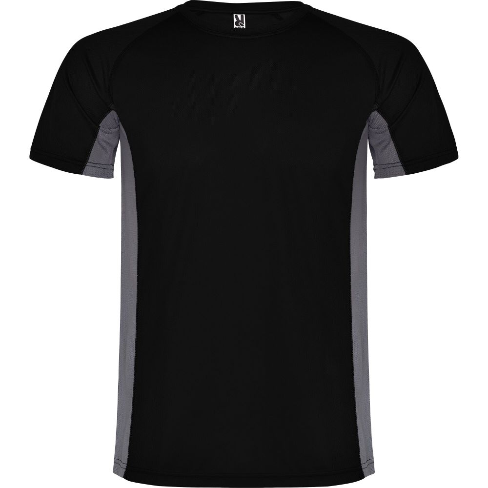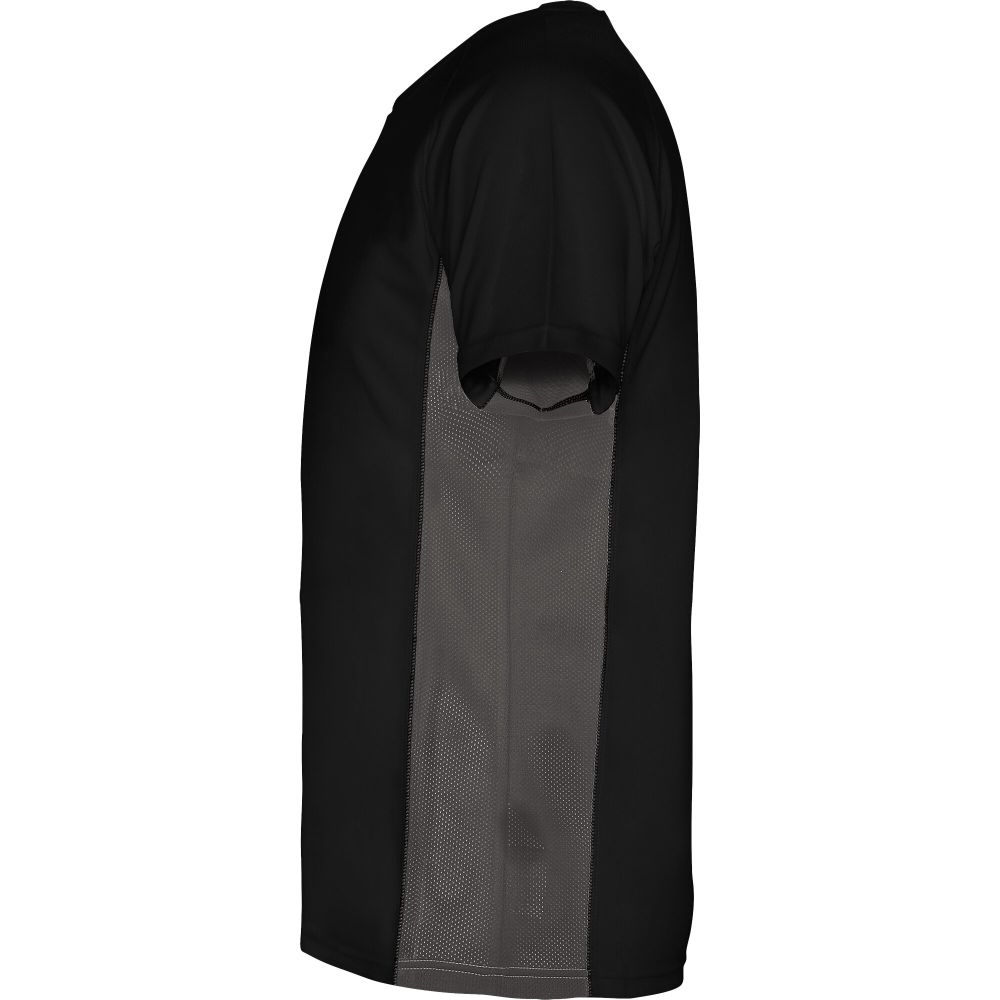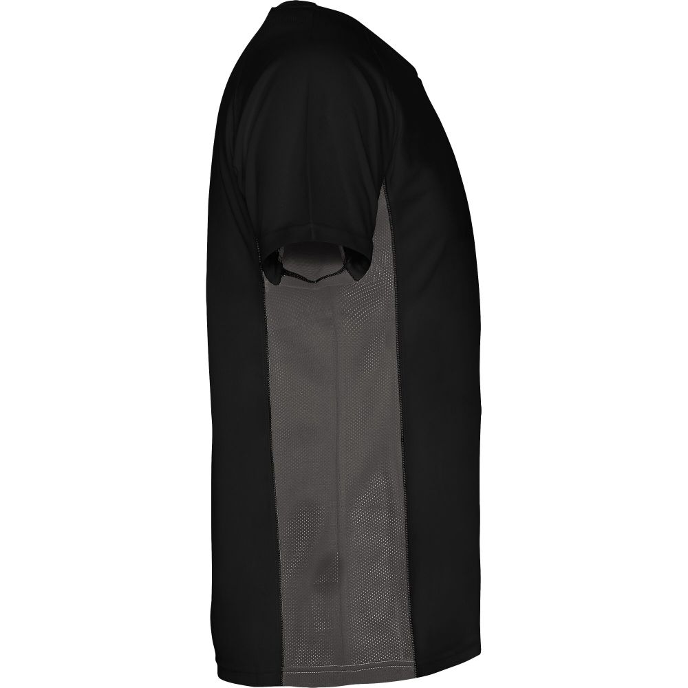 Technical and breathable fabric. A combination of two polyester fabrics: Main fabric in birds eye, side panels and inner sleeve in microperforated fabric. Crew neck with inner reinforced covered seams. Removable label. Mesh with cool fit finish of 100% Polyester, 140 g/m2, Contrast fabric, Mesh with cool fit finish of 100% Polyester, 140 g/m2.