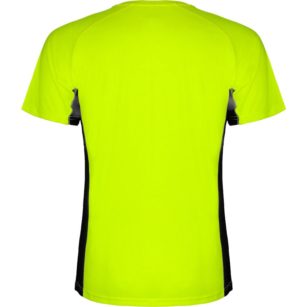 Technical and breathable fabric. A combination of two polyester fabrics: Main fabric in birds eye, side panels and inner sleeve in microperforated fabric. Crew neck with inner reinforced covered seams. Removable label. Mesh with cool fit finish of 100% Polyester, 140 g/m2, Contrast fabric, Mesh with cool fit finish of 100% Polyester, 140 g/m2.