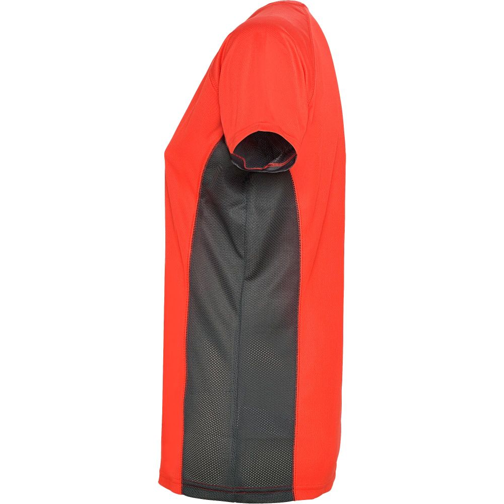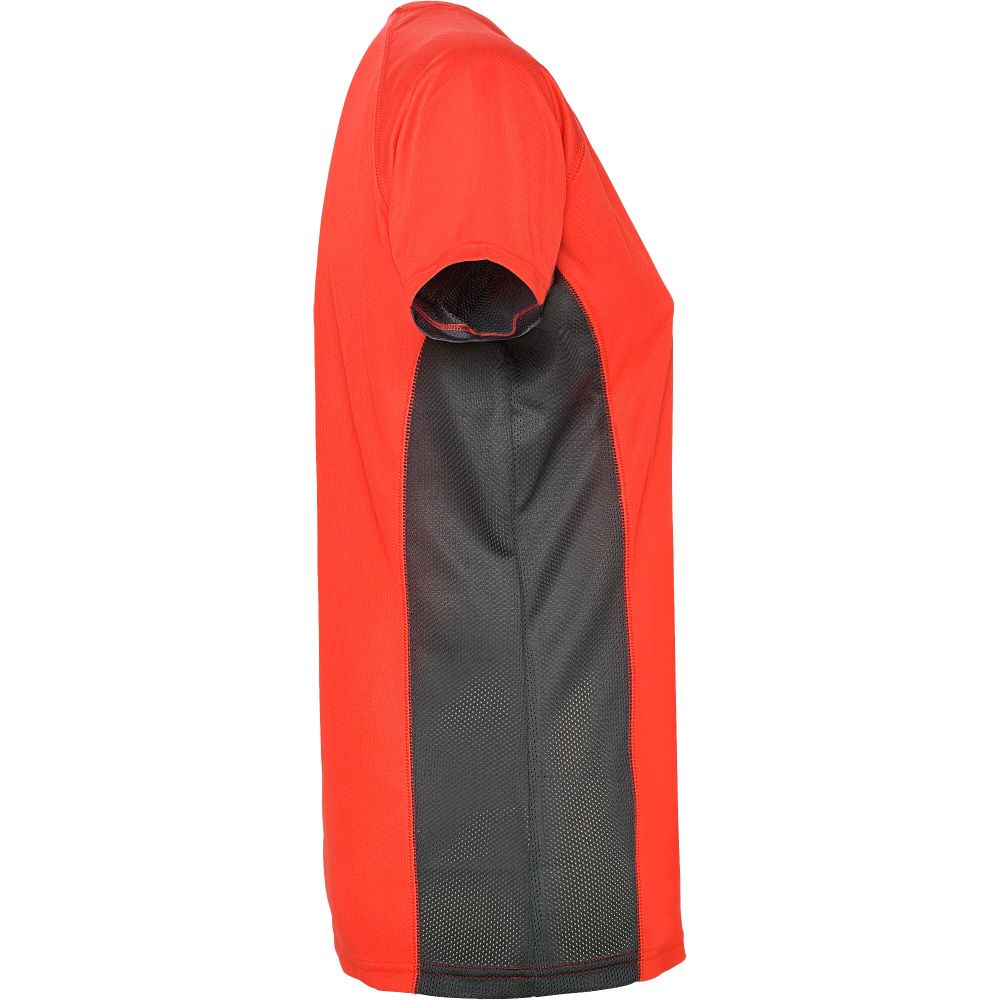 Technical and breathable fabric. A combination of two polyester fabrics: Main fabric in birds eye, side panels and inner sleeve in microperforated fabric. Crew neck with inner reinforced covered seams. Removable label. Mesh with cool fit finish of 100% Polyester, 140 g/m2, Contrast fabric, Mesh with cool fit finish of 100% Polyester, 140 g/m2.