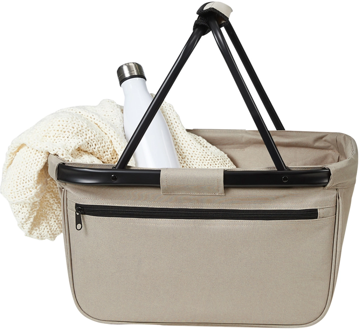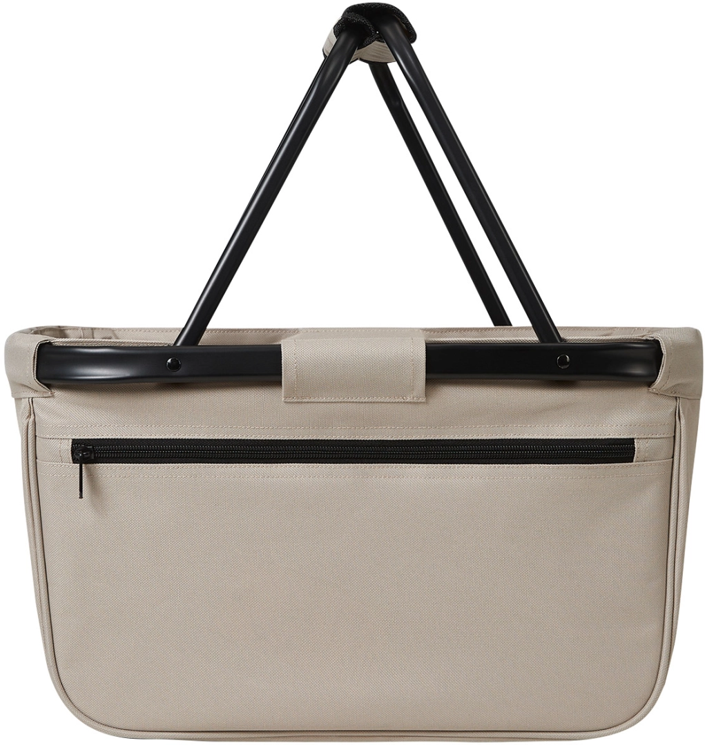 Shopping basket with aluminum frame and zip front pocket, foldable, size: 45x25/45x25cm. Material: 600D polyester.