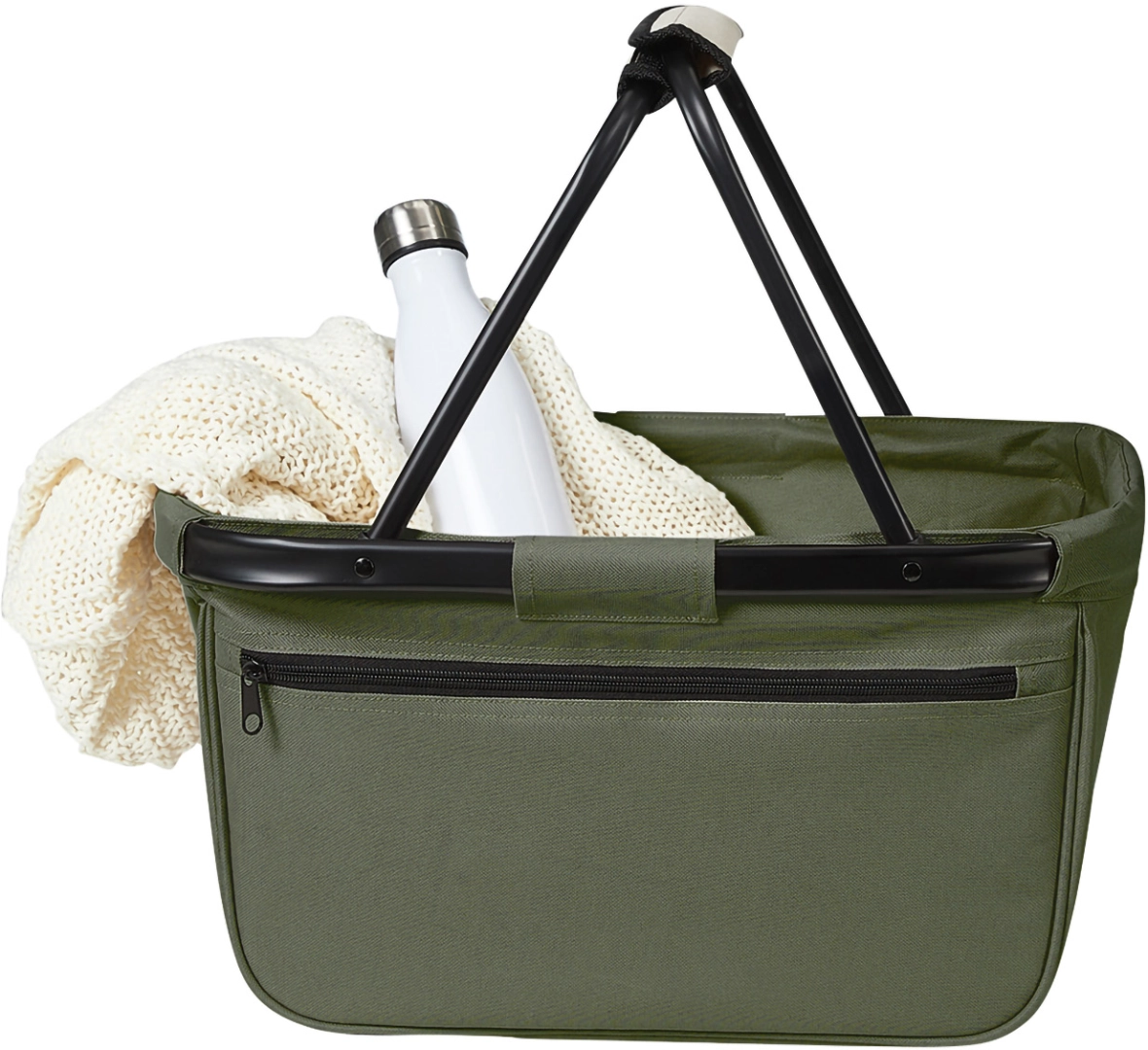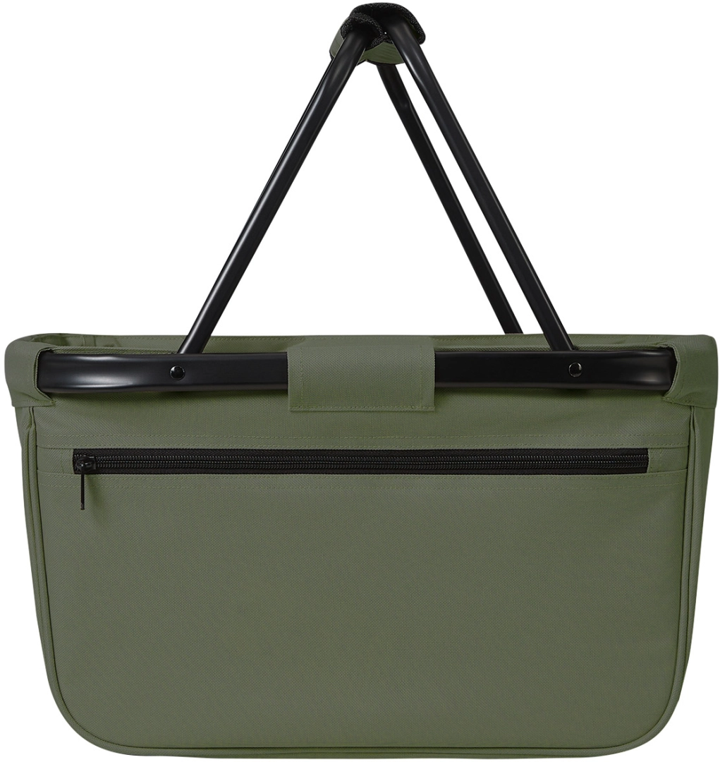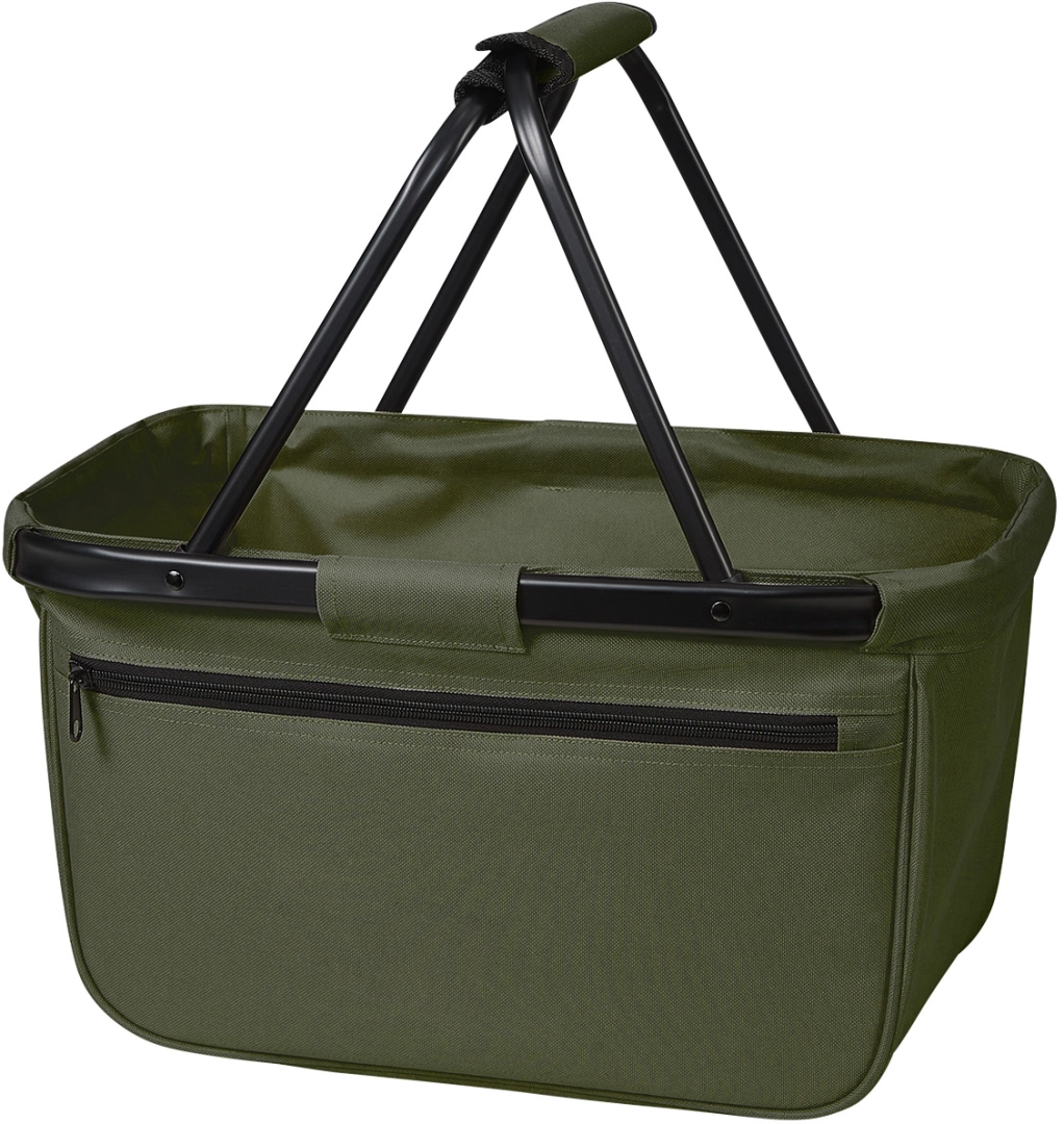Shopping basket with aluminum frame and zip front pocket, foldable, size: 45x25/45x25cm. Material: 600D polyester.