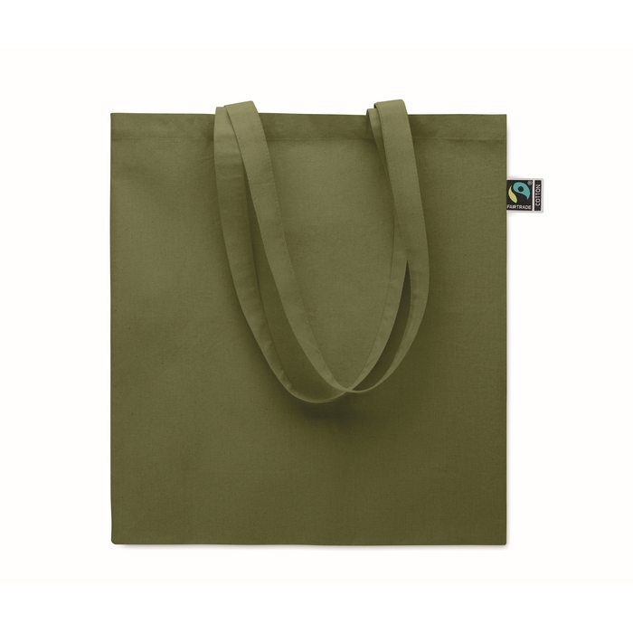 Shopping bag with long handles and gusset made of Fairtrade cotton. 180 gr/m2. Dimensions: 38 x 12 x 42 cm