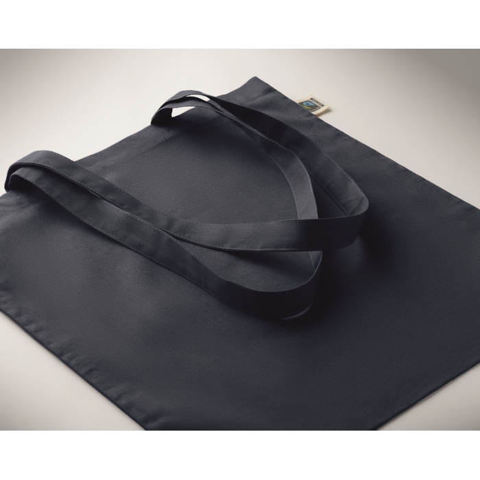 Fairtrade cotton shopping bag with long handles. 180 gr/m2. Dimensions: 38 x 42 cm