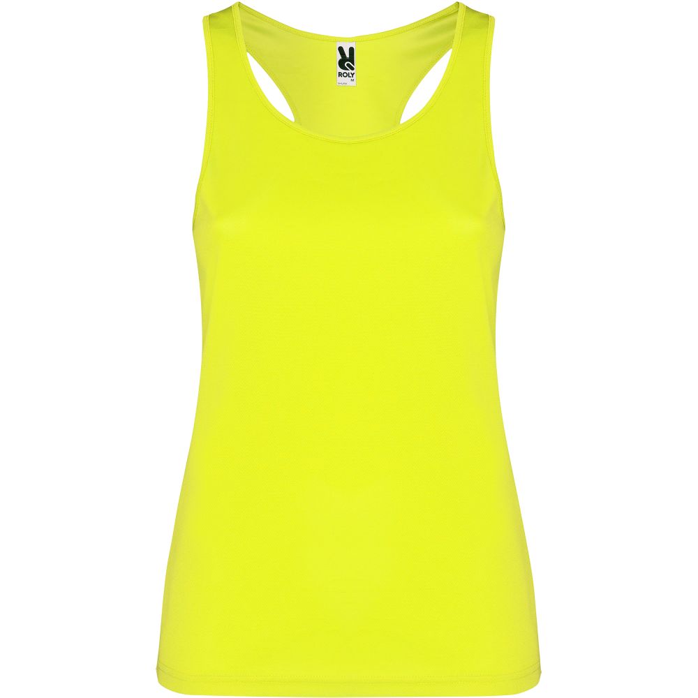 Technical, breathable, easy-wash and easy-dry fabric. Ribbed armholes and neckline. Racerback and side seams. Removable label. Piqué knit with cool fit finish of 100% Polyester, 140 g/m2.