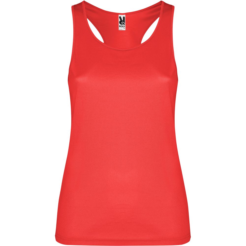 Technical, breathable, easy-wash and easy-dry fabric. Ribbed armholes and neckline. Racerback and side seams. Removable label. Piqué knit with cool fit finish of 100% Polyester, 140 g/m2.