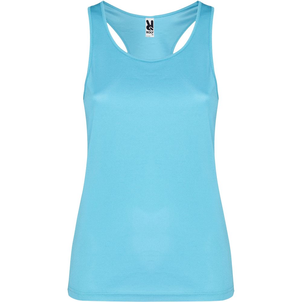 Technical, breathable, easy-wash and easy-dry fabric. Ribbed armholes and neckline. Racerback and side seams. Removable label. Piqué knit with cool fit finish of 100% Polyester, 140 g/m2.