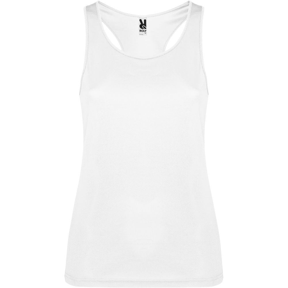 Technical, breathable, easy-wash and easy-dry fabric. Ribbed armholes and neckline. Racerback and side seams. Removable label. Piqué knit with cool fit finish of 100% Polyester, 140 g/m2.