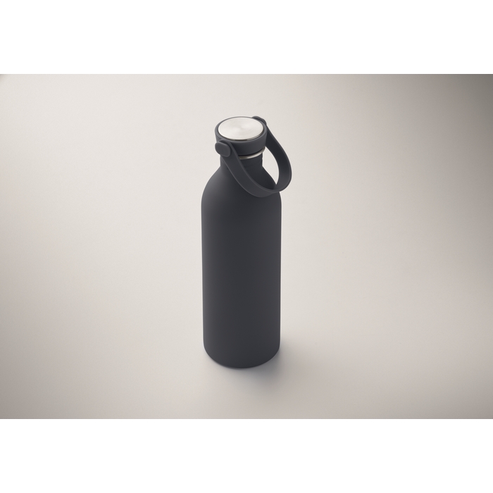 Single wall bottle made of 90 % recycled stainless steel and 10% stainless steel with rubber finish. Includes PP and SS lid with silicone handle. Capacity: 500 ml. Rozměry: O6.1 x 21.3 cm