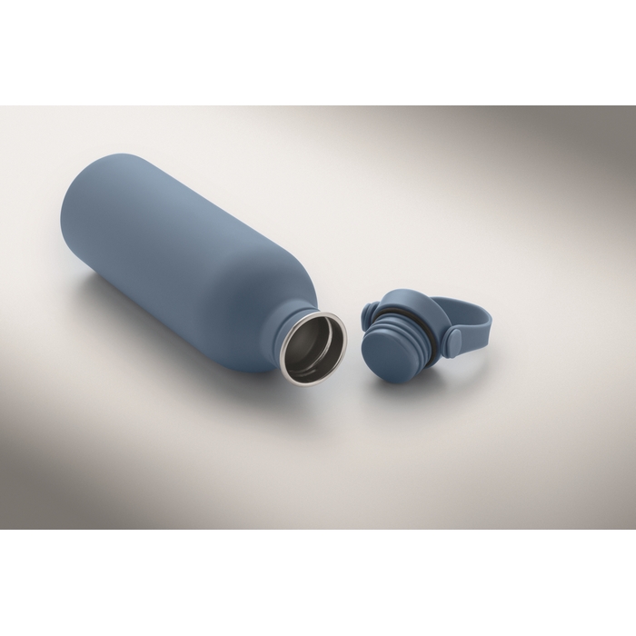 Single wall bottle made of 90 % recycled stainless steel and 10% stainless steel with rubber finish. Includes PP and SS lid with silicone handle. Capacity: 500 ml. Rozměry: O6.1 x 21.3 cm