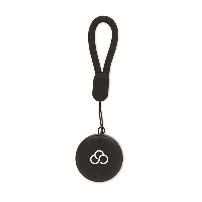 Smart Apple Find My / Google Find Hub locator device with strap and IPX5 waterproof rating. Dimensions: 32 x 32 x 8MM