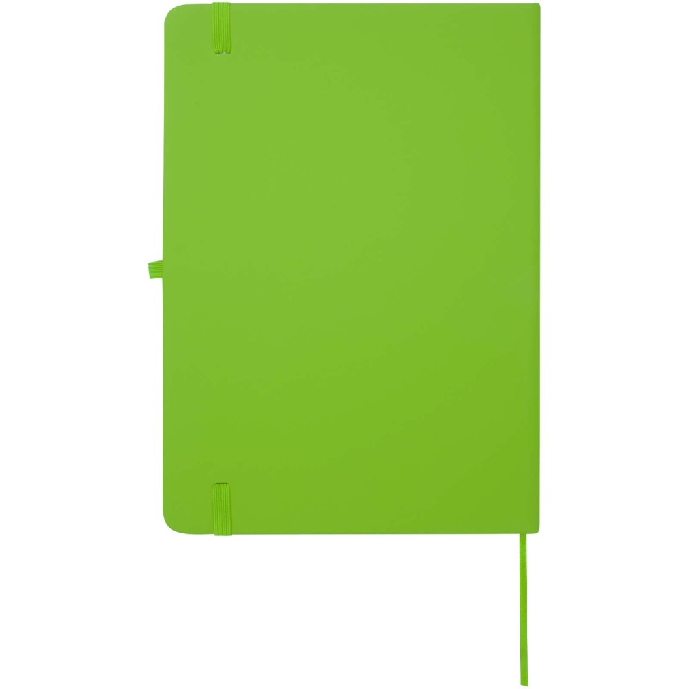 The Spectrum Plus A5 hard cover notebook with rounded corners is not only an office essential but also a great opportunity to promote your brand. The cardboard notebook has a soft-feel cover and 80 lined cream coloured sheets of 70 g/m2, ideal for writing down quick ideas or long notes. The notebook has a pen loop, elastic closure, ribbon marker and accordion pocket. Dimensions: 21 x 14,5 cm