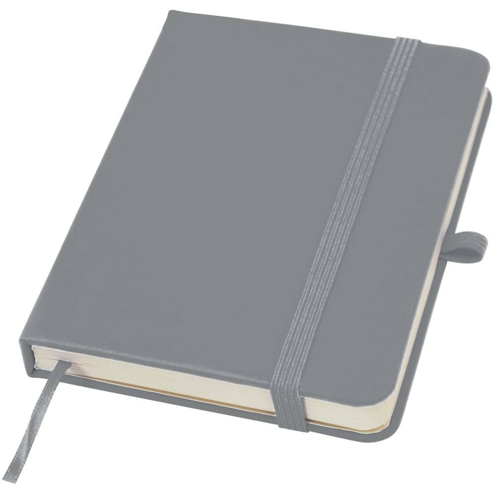 The Spectrum Plus A6 hard cover notebook with rounded corners is not only an office essential but also a great opportunity to promote your brand. The cardboard notebook has a soft-feel cover and 80 lined cream coloured sheets of 70 g/m2, ideal for writing down quick ideas or long notes. The notebook has a pen loop, elastic closure, ribbon marker and accordion pocket. Dimensions: 14 x 8,9 cm
