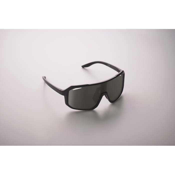 Sports sunglasses with mirrored lenses and colour frame. UV400 protection. Dimensions: 14.7 x 5.8 x 12.8 cm