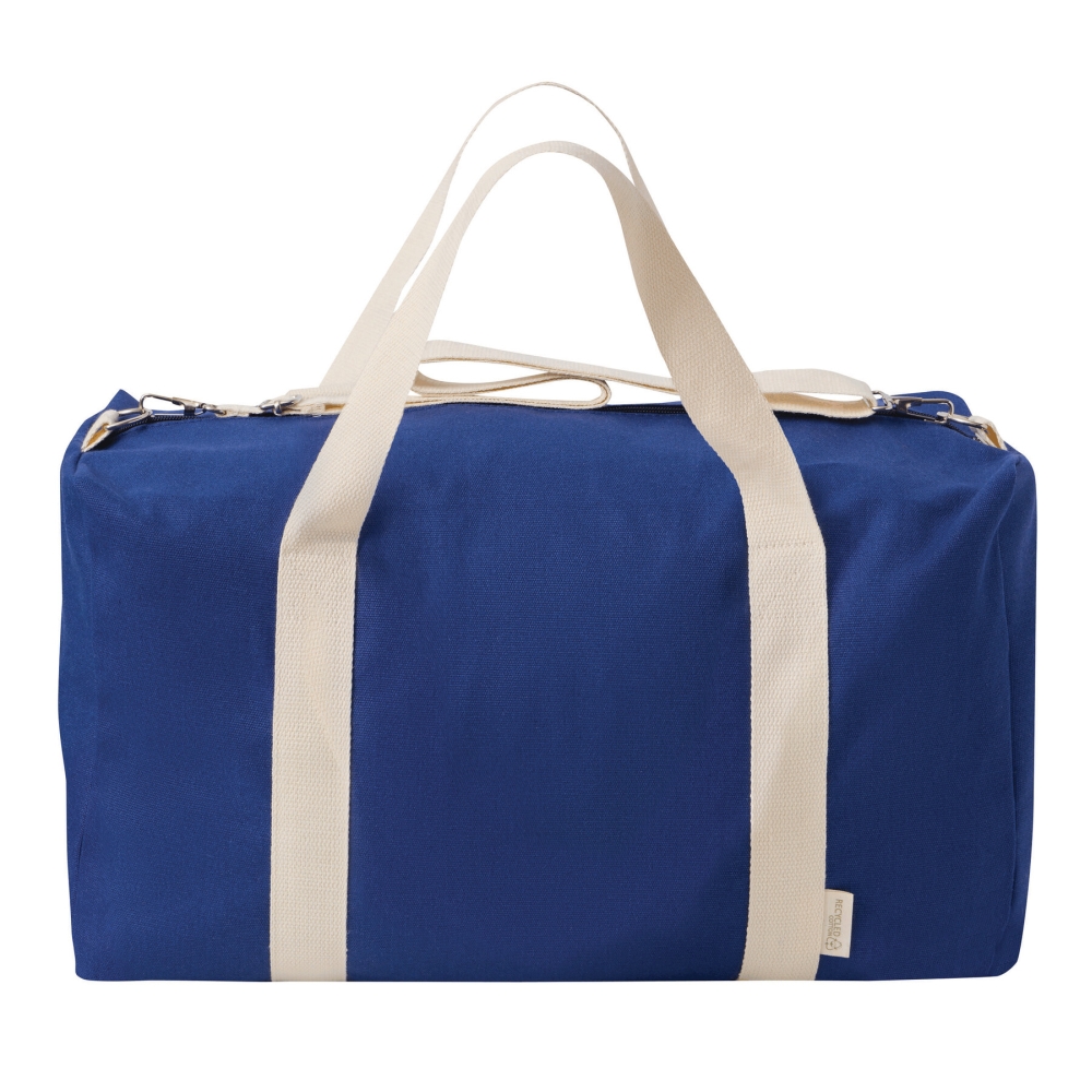Sports bag made of recycled cotton and polyester, spacious zipped main compartment, 2 carrying handles, adjustable and detachable shoulder strap. Dimensions: 48,5 x 27 x 21 cm
