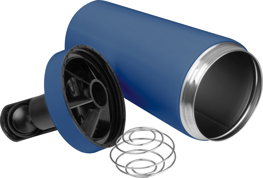 Protein shaker made of recycled stainless steel with metal shaker ball and 750ml capacity. Dimensions: o 9,2 x 22,8 cm