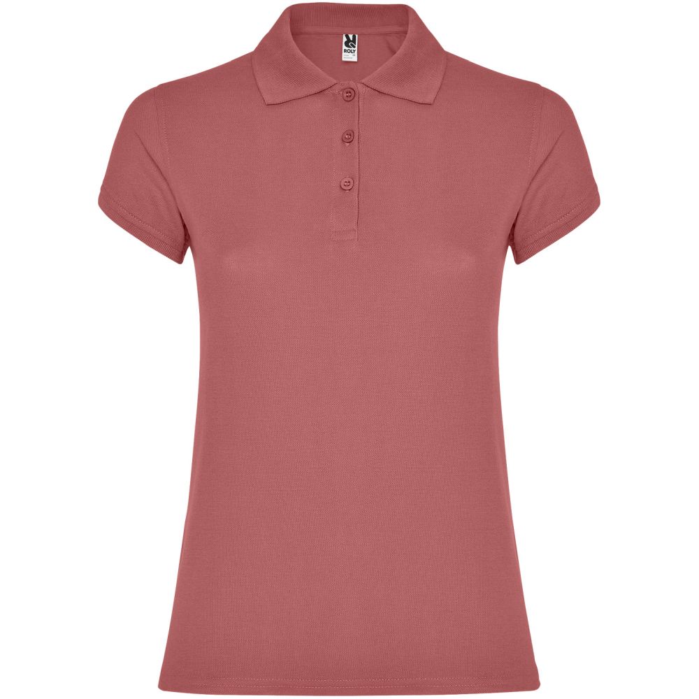 Short-sleeve polo shirt for women. Reinforced covered seams in interior collar. 1x1 ribbed collar and cuffs. Side seams and fitted cut. Narrow 3-button placket. Side slits. Removable label. The model is 179 cm and is wearing size S.