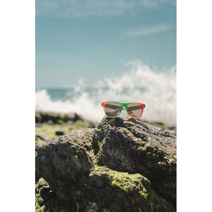 Rainbow multicolour sunglasses with PC frame with UV400 protection. Dimensions: 14.2 x 4.6 x 14 cm