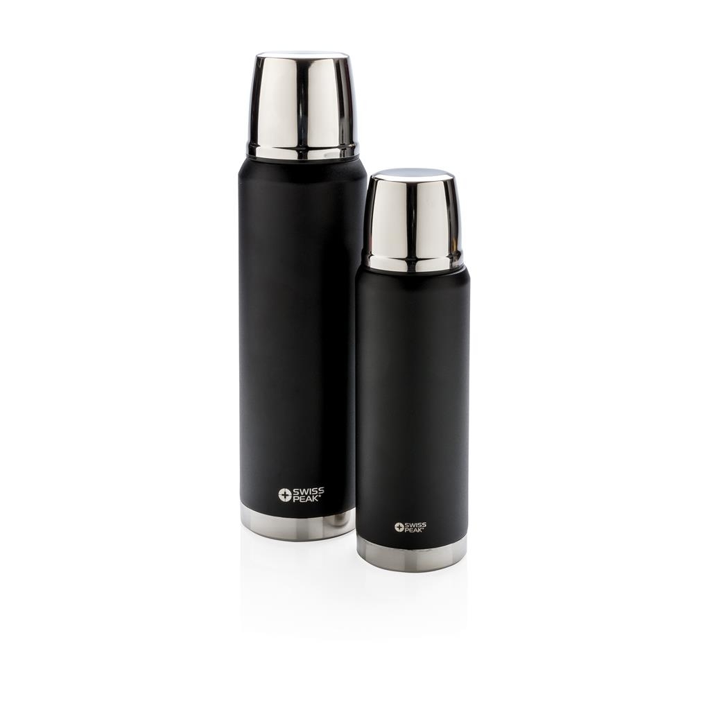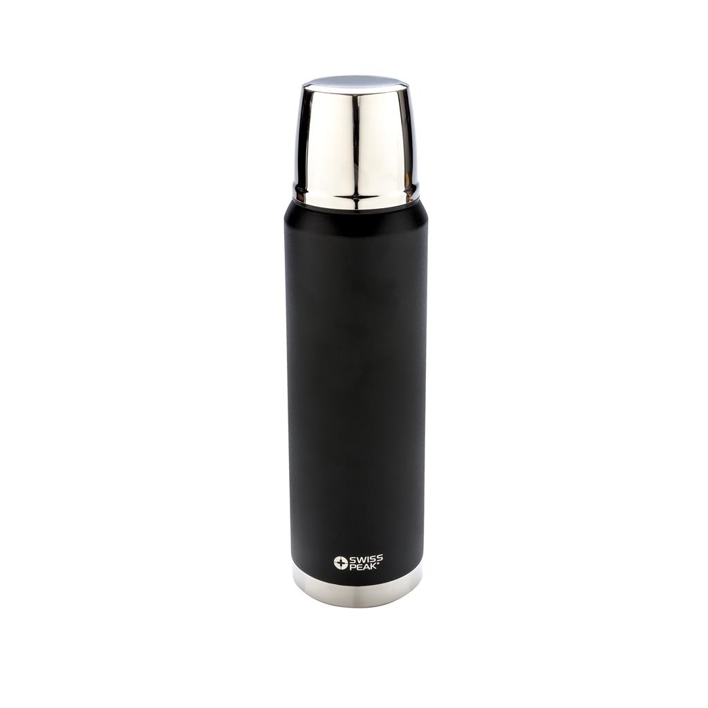 The Swiss Peak Elite series are with vacuum insulation and double wall 18/8 grade stainless steel. The powder coated black color is built to last! No fading or cracking here! The inner wall is plated with copper for ultimate conductivity to keep drinks hot for 8 hours and cold for 24 hours. Hand washable and leakproof. Content 1000 ml. size: 32,60x8,70 cm Printing technology: l1 Maximum print size: 30x50