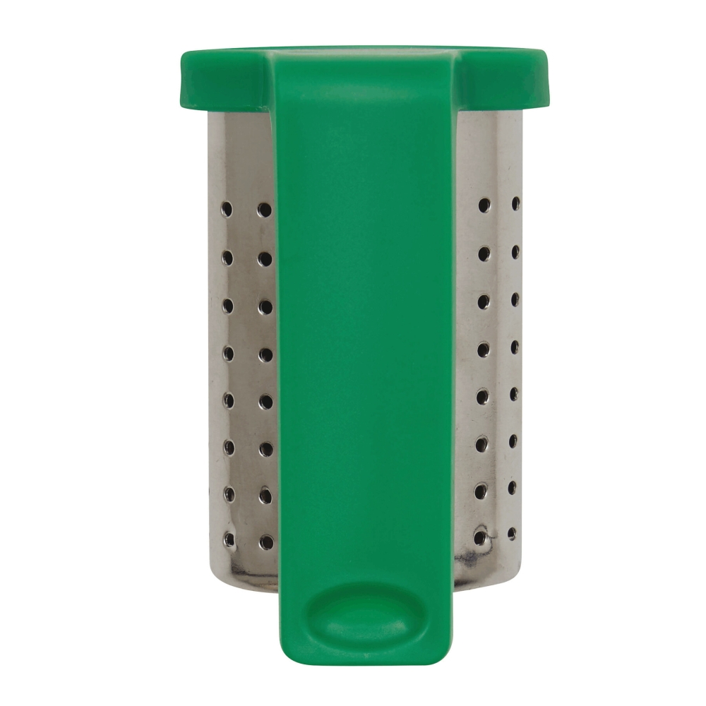 Tea infuser made of stainless steel, reusable, tasteless, ideal for coarse loose tea, with a practical plastic clip for easy attachment to the rim of the cup. Dimensions: 4 x 3,7 x 6 cm