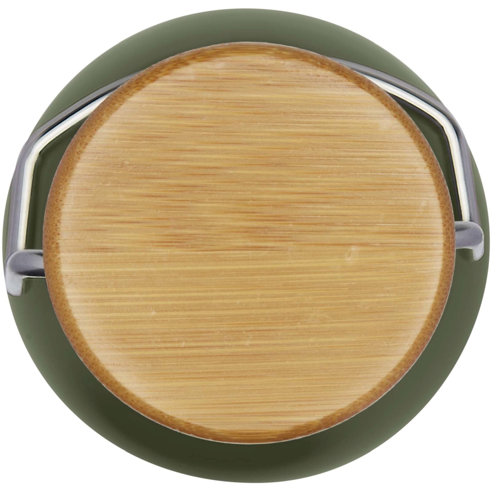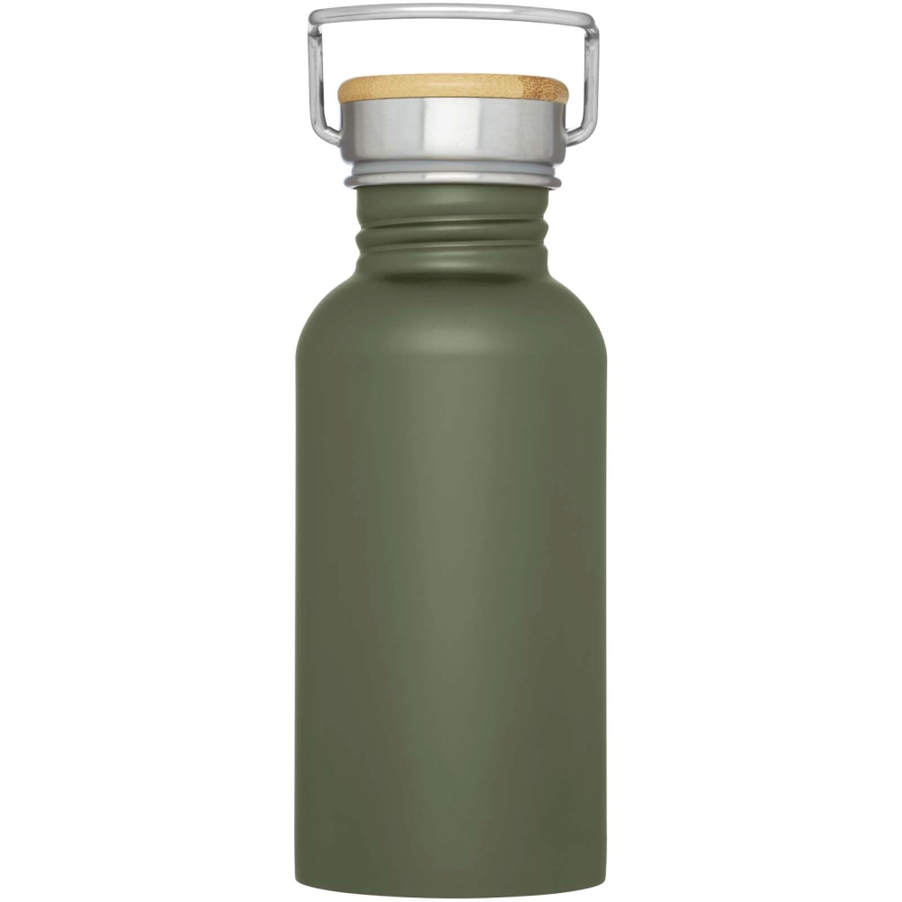 Single-walled stainless steel bottle with screw-on lid. The lid features a bamboo top, as well as a handle for easy carrying. Volume capacity is 550 ml. Presented in an Avenue gift box. Dimensions: 18,8 x O 7,4 cm