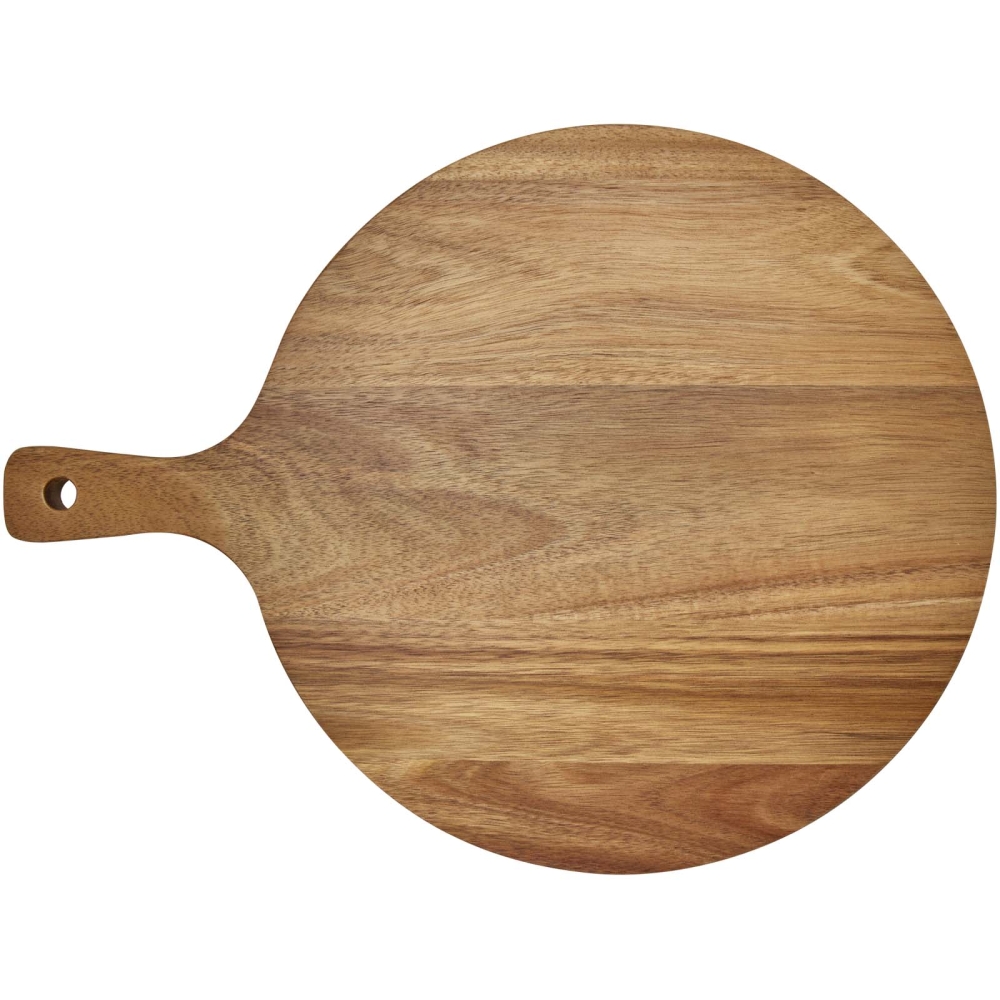 Pizza set made of acacia wood. The set includes a pizza serving board with 6 grooves to slice and portion, and a pizza cutter. Dimensions: 47,2 x 1,5 x 35,2 cm