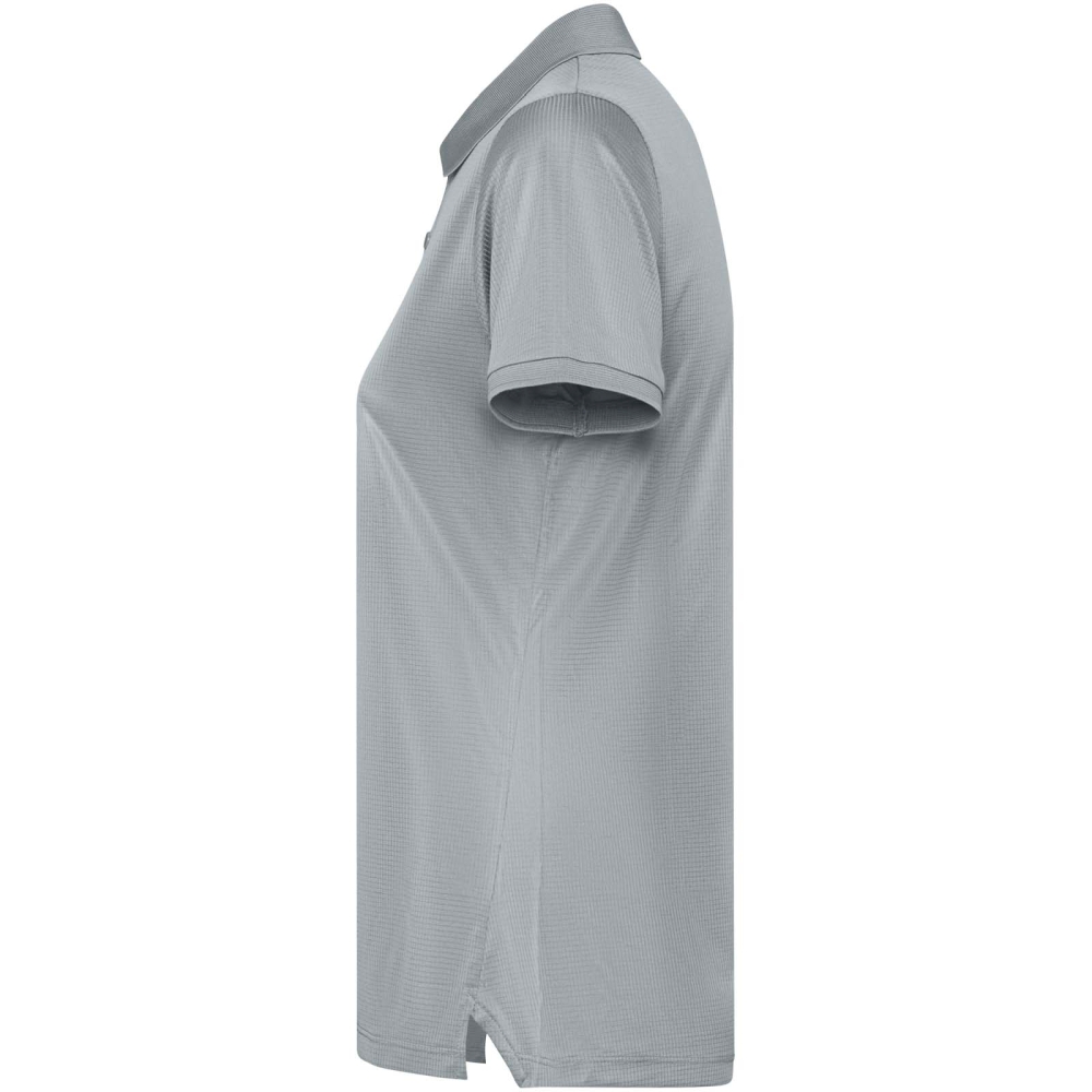 Short-sleeve fitted polo shirt for women. Reinforced covered seams in interior collar. 1x1 ribbed cuffs and collar. Side seams. 3-button placket and side slits.