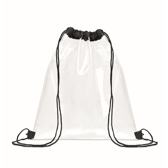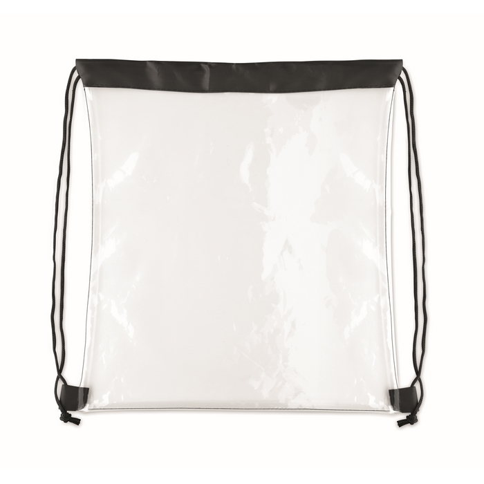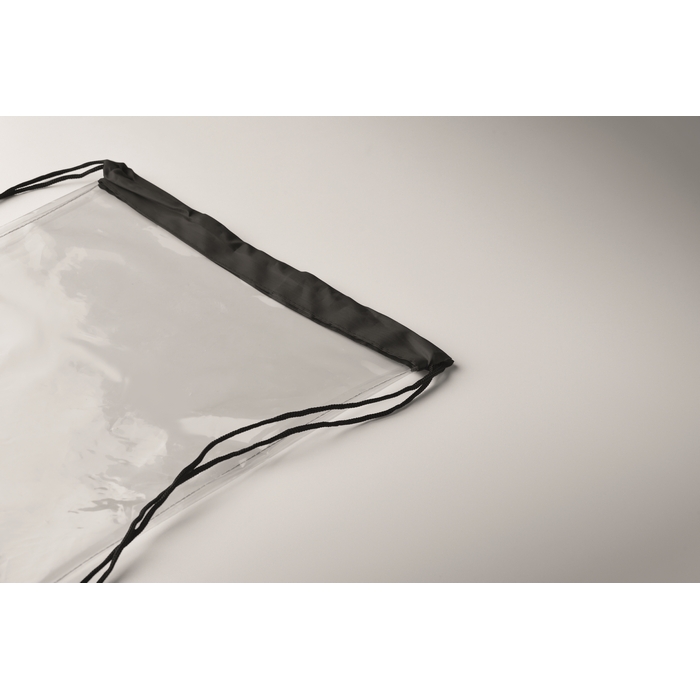 Transparent drawstring bag in EVA and PVC. Polyester cords. Dimensions: 36 x 40 cm