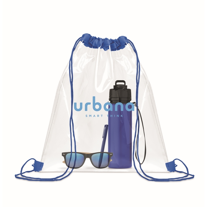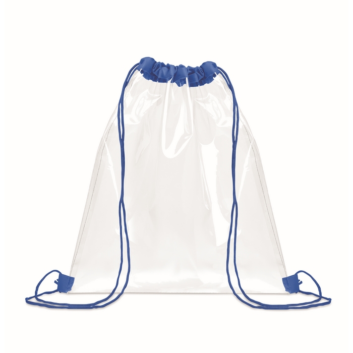 Transparent drawstring bag, royal blue
