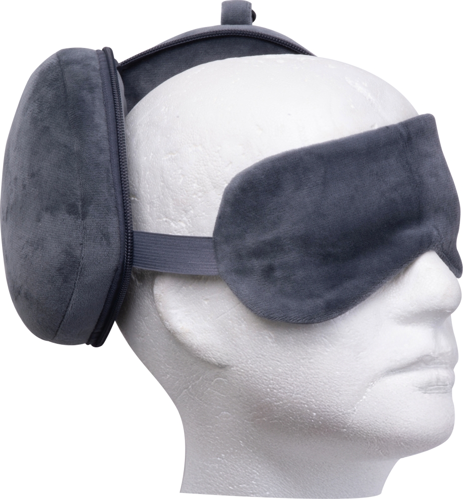 Travel set consisting of an eye mask and a pillow. Made of microfiber material. Ideal for flights, train rides, or car trips. Dimensions: o 15,5 x 10 cm
