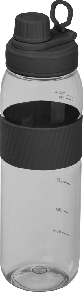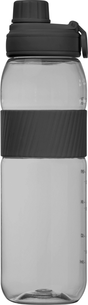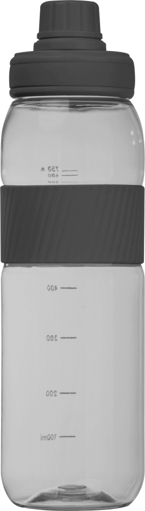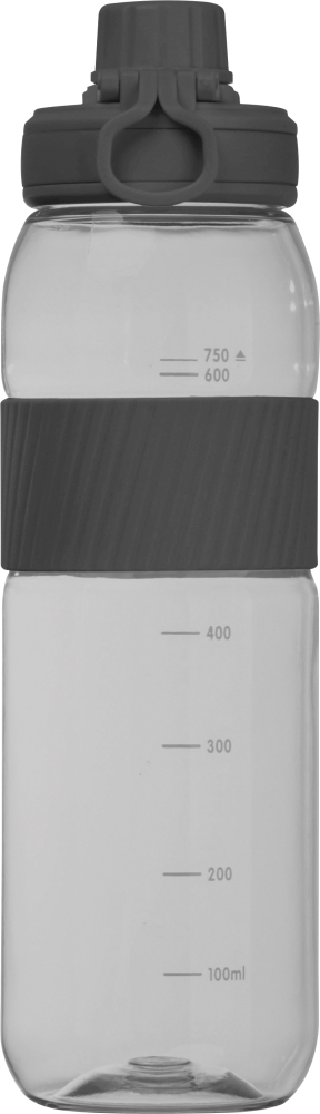 Tritan drinking bottle with screw cap, non-slip silicone grip zone, and 750ml capacity. Dimensions: o 7 x 25 cm