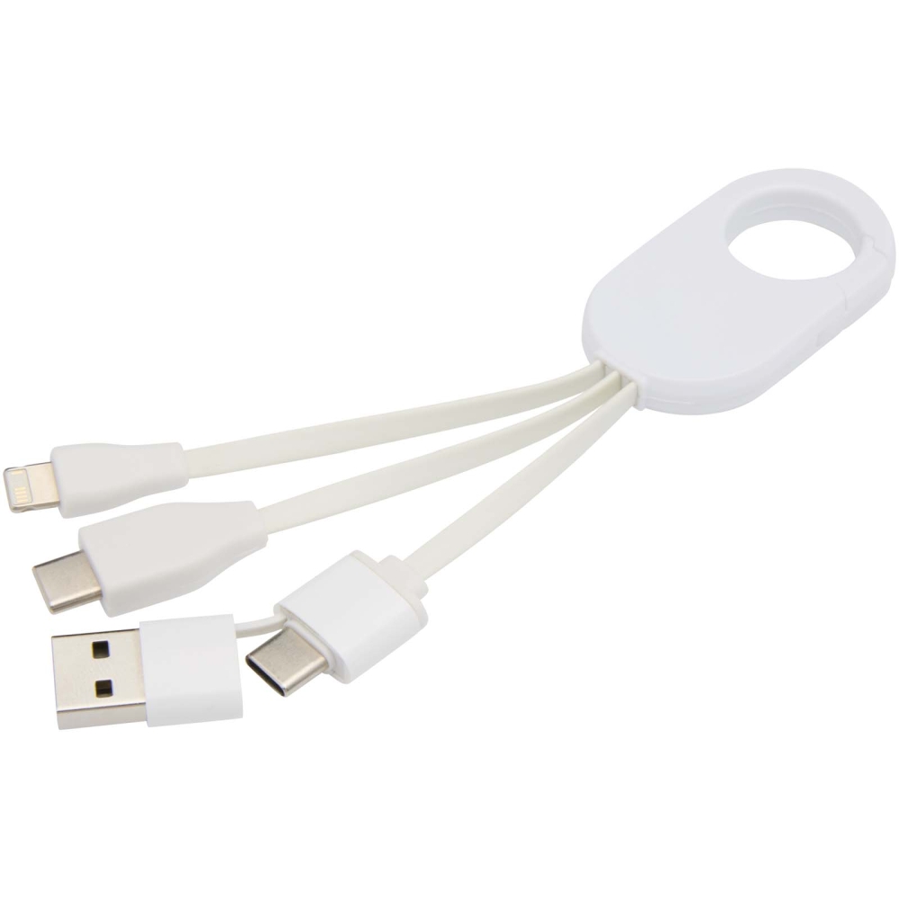 The Troop 4-in-1 charging cable made from recycled plastic, features USB-A and Type-C input connectors combined with Type-C and Lightning/Micro USB combi output connectors, allowing you to charge most smartphones, cameras, power banks, and earbuds. The built-in carabiner allows for easy attachment to a bag or keychain, ensuring you’re always prepared to power up your devices anywhere. Dimensions: 14 x 3 cm