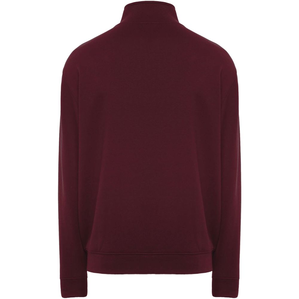 High collar sweater with matching zip. Matching inner collar with reinforced covered seams. 1x1 ribbed fabric in cuffs and waist. Removable label. The male model is 185 cm and is wearing size L, and the female model is 168 cm and is wearing size S.