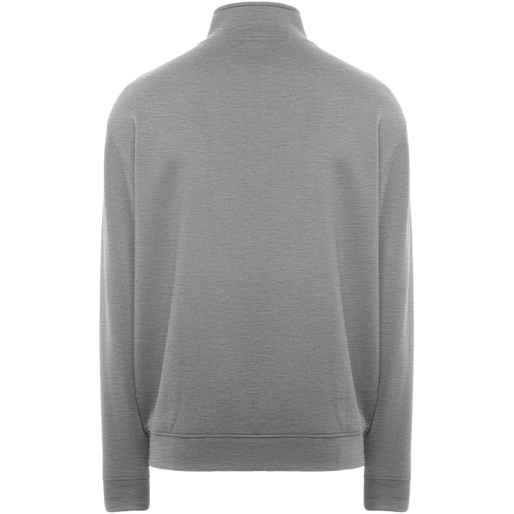 High collar sweater with matching zip. Matching inner collar with reinforced covered seams. 1x1 ribbed fabric in cuffs and waist. Removable label. The male model is 185 cm and is wearing size L, and the female model is 168 cm and is wearing size S.