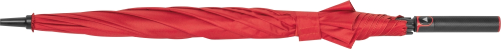 Classic umbrella with integrated ring handle, automatic opening, and fiberglass frame and ribs. The canopy is made of 190T pongee material. Dimensions: o 120 x 93 cm