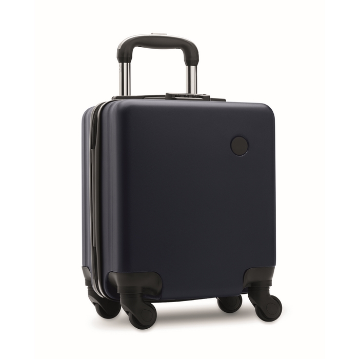 14 inch underseat luggage trolley with 4 wheels in ABS. It has an inside zippered pocket. Including a combination lock and double tube frame. Dimensions: 40 x 20 x 30 cm